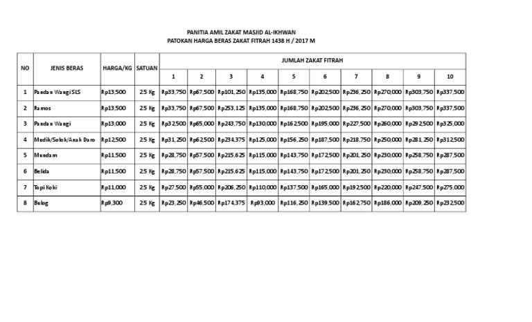 Harga Zakat Fitrah 2017 : Kata fitrah yang ada merujuk pada keadaan manusia saat baru diciptakan sehingga dengan mengeluarkan zakat ini manusia.