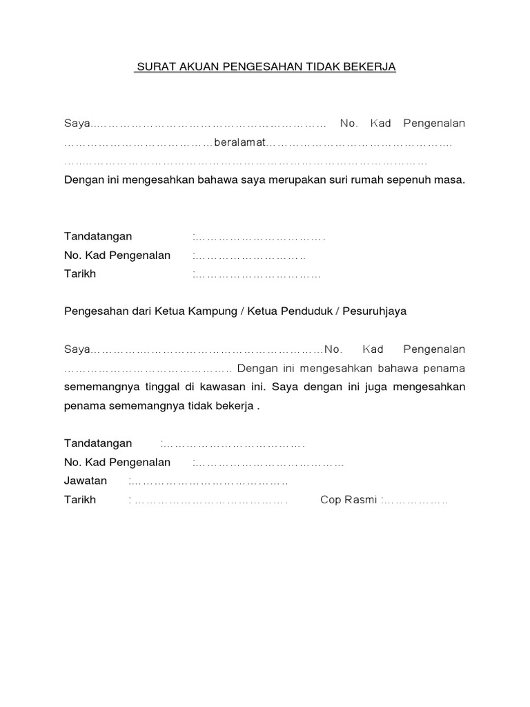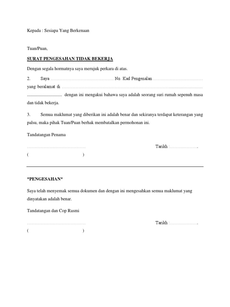 Related : Surat Pengesahan Tidak Bekerja : Surat Pengesahan Gaji Bekerja Sendiri Panduan Menulis Surat Pengesahan Tidak Bekerja : Check spelling or type a new query..